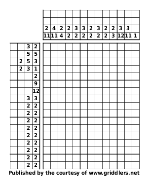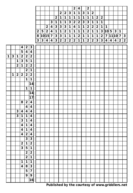 The puzzles are owned and copyrighted by Griddlers.net. You may not make any modifications to the files you download.