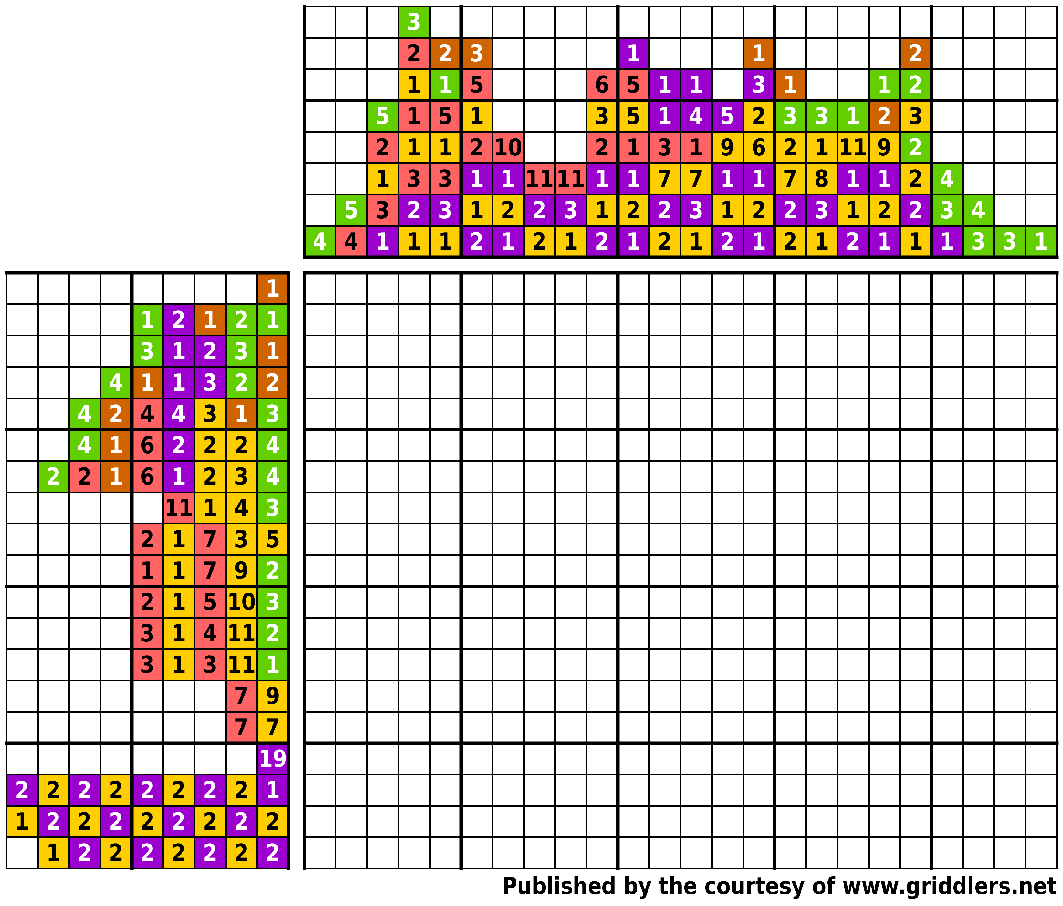 De puzzels zijn het eigendom van Griddlers.net en er zit copyright op. De bestanden die je krijgt mogen niet worden gewijzigd of aangepast.